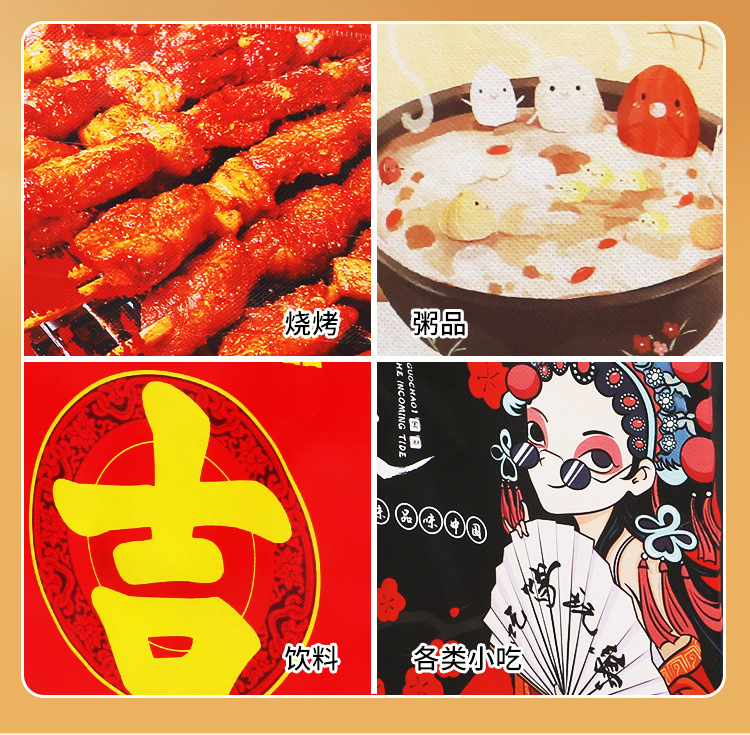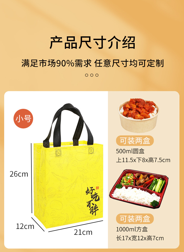 材质选择:无纺布覆膜外卖袋的材质有多种选择,如PP无纺布、PE无纺布、复合无纺布等。客户需要根据使用环境和要求选择合适的材质。